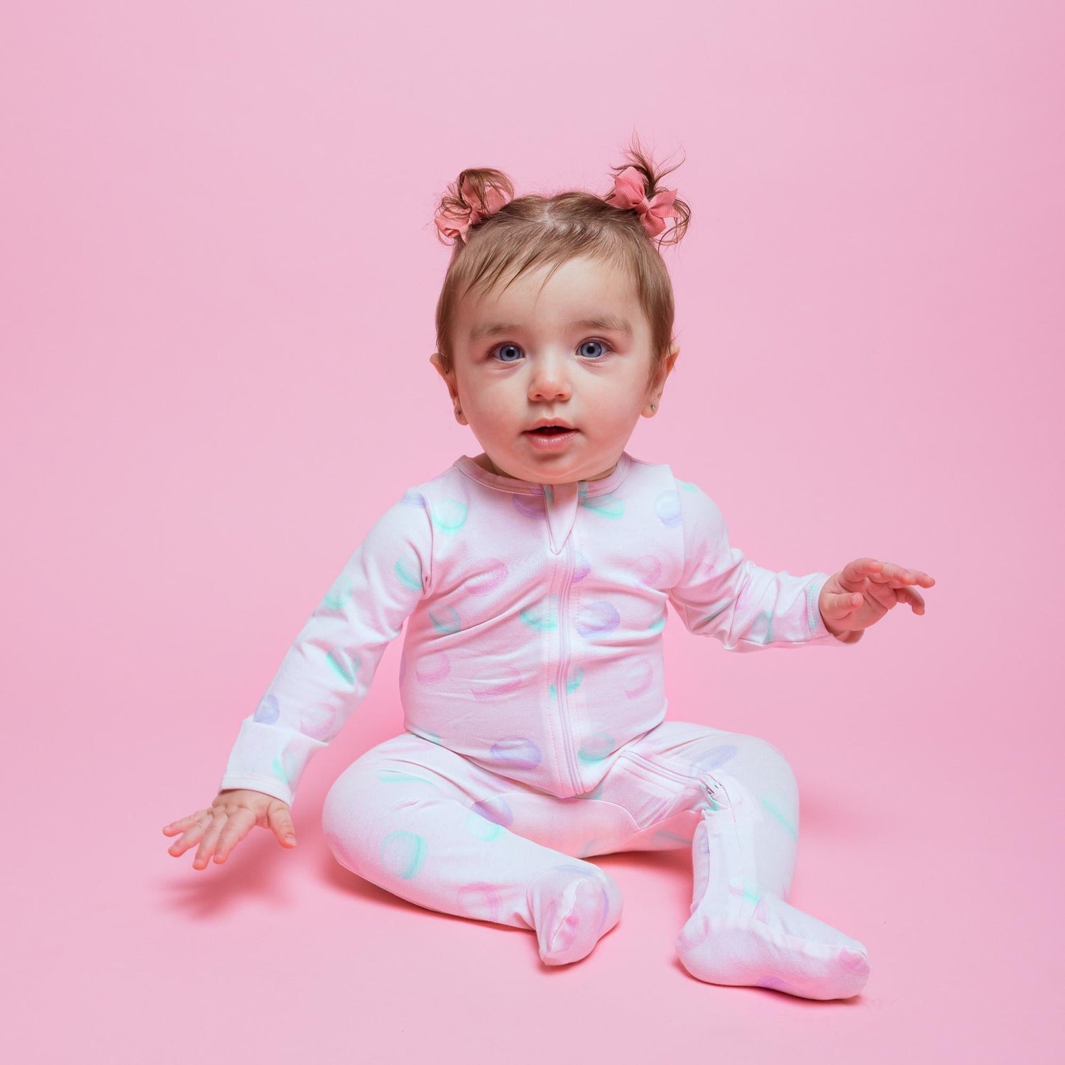 Organic Footie - Macarons - Newborn is backordered and will ship as soon as it is back in stock.