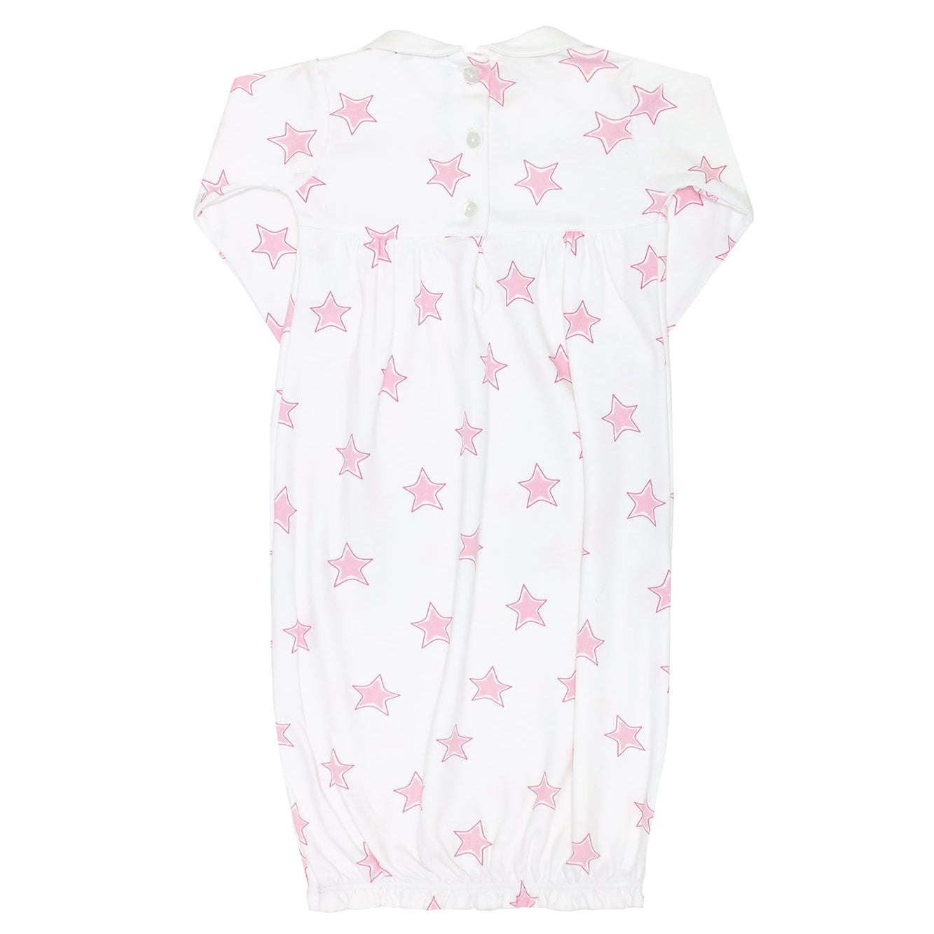 Pink Stars Print Smocked Gown - Pink / 0 - 3M is backordered and will ship as soon as it is back in stock.