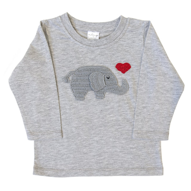 For Valentine's Day or everyday! Comfy tee with a hand-appliquéd elephant and heart.