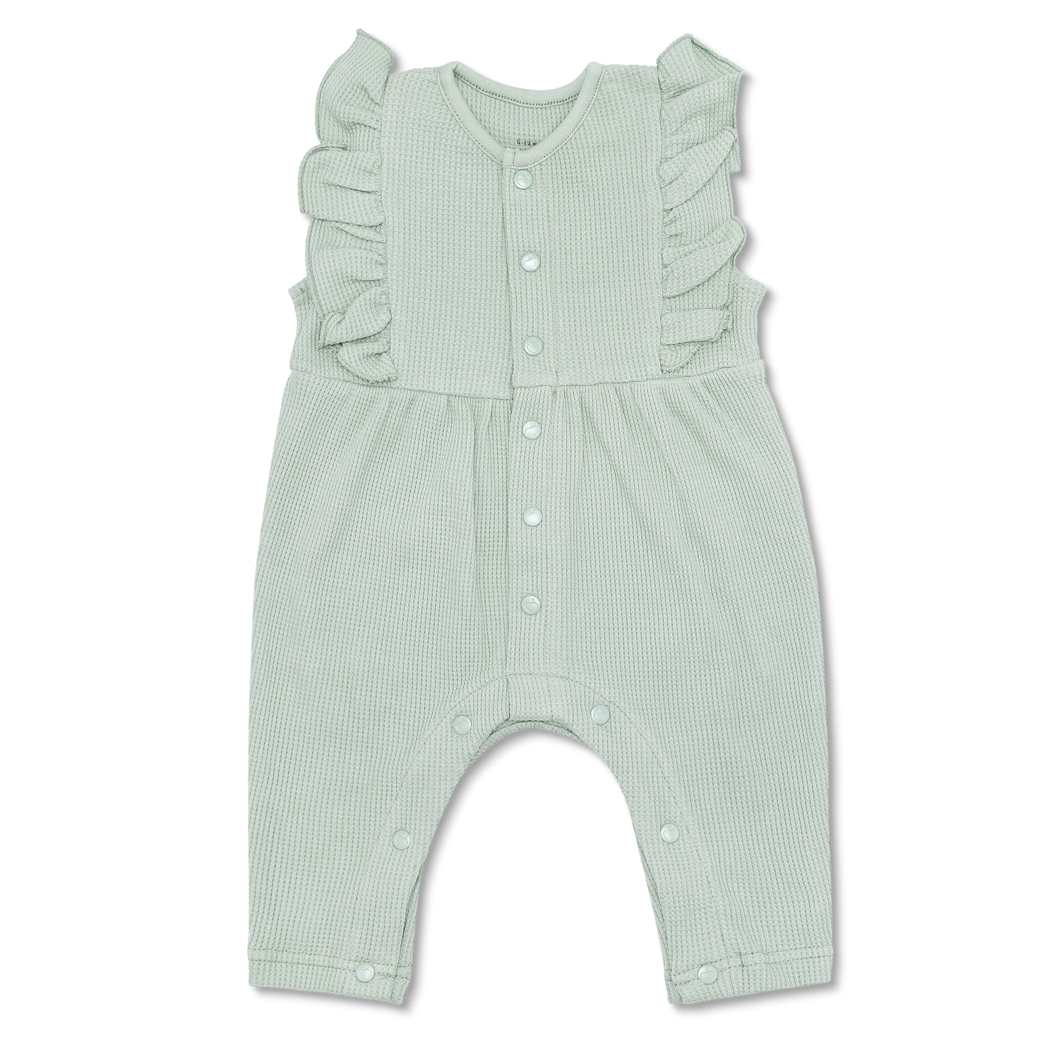 Waffle Ruffle Coverall - Sage - 3-6 mo. / Sage is backordered and will ship as soon as it is back in stock.
