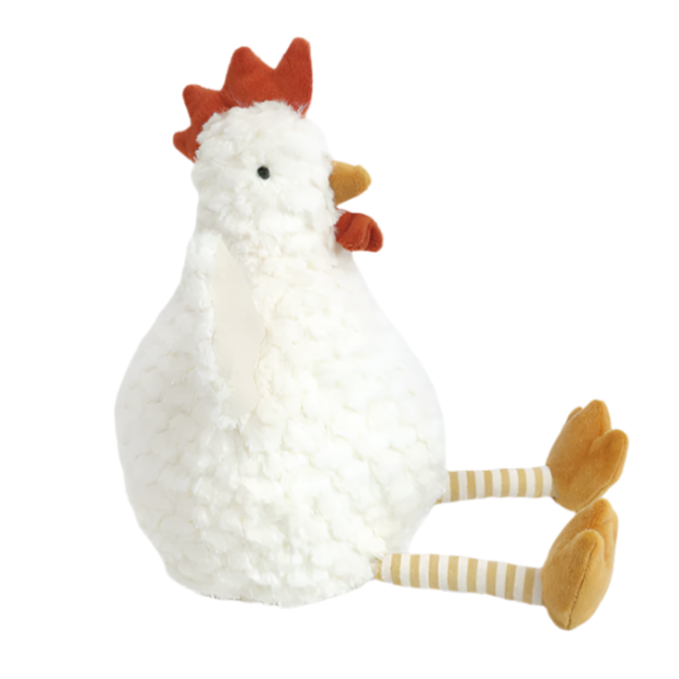 We're so egg-cited to introduce our spring-perfect addition: Dixie Chicken Plush Toy. Perched in any playroom, this jolly chicken stuffed animal sparks smiles with his ultra-plush faux fur feathers, playful striped legs and adorable face. Loveable and huggable, Mon Ami's squeezable chicken plush toy is up for endless adventures with plenty of afternoon naps, of course. Dixie Chicken Stuffed Animal makes an im-peck-able addition to an Easter basket.