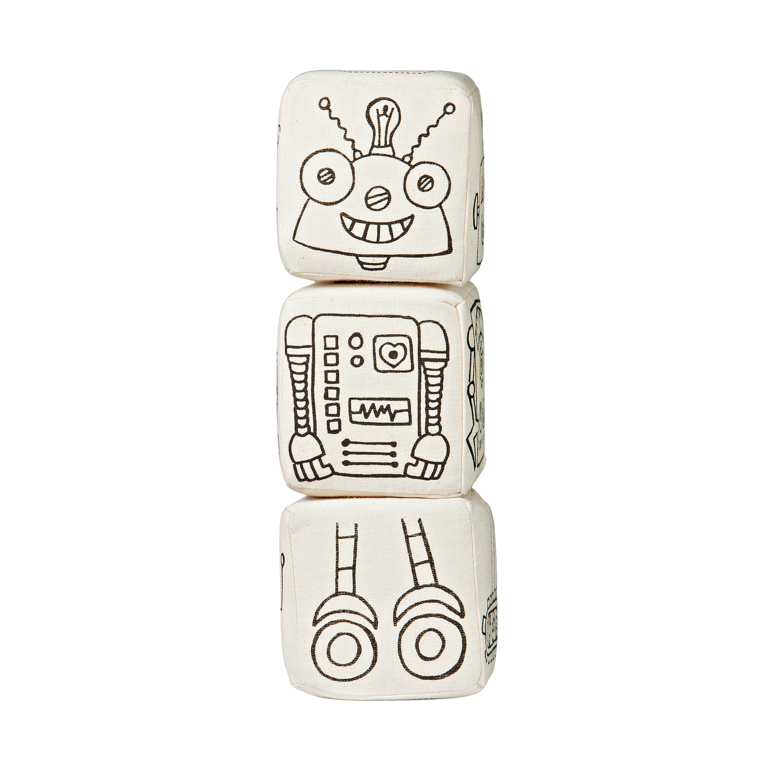 • They have cotton canvas fabric on the outside and are filed with a foam that is soft to be thrown and squeezed by little hands, but firm enough for them to color.