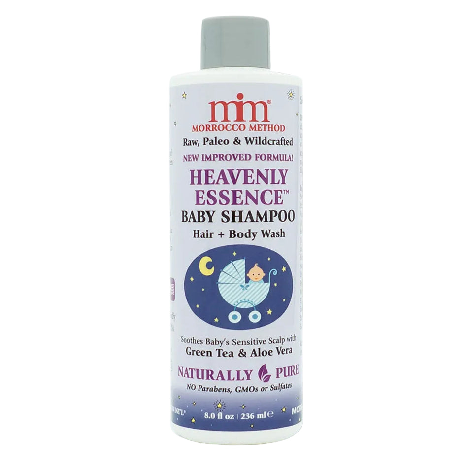 Morrocco Method Heavenly Essence Shampoo starts your child’s hair journey with gentle cleansing of hair and scalp, free from soap, parabens, and synthetics. It also doubles as a body wash, with natural botanicals and herbs that soothe and protect delicate skin. Gentle enough for infants, toddlers, and children. Soap-free, paraben-free, and made in the USA.
