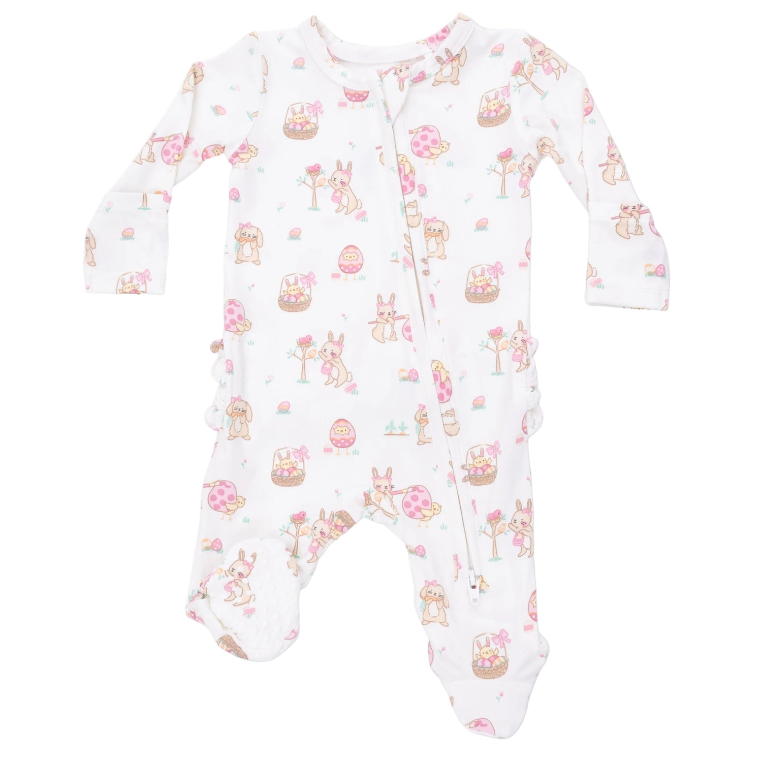 Easter Egg Hunt Pink - 2 Way Ruffle Back Zipper Footie