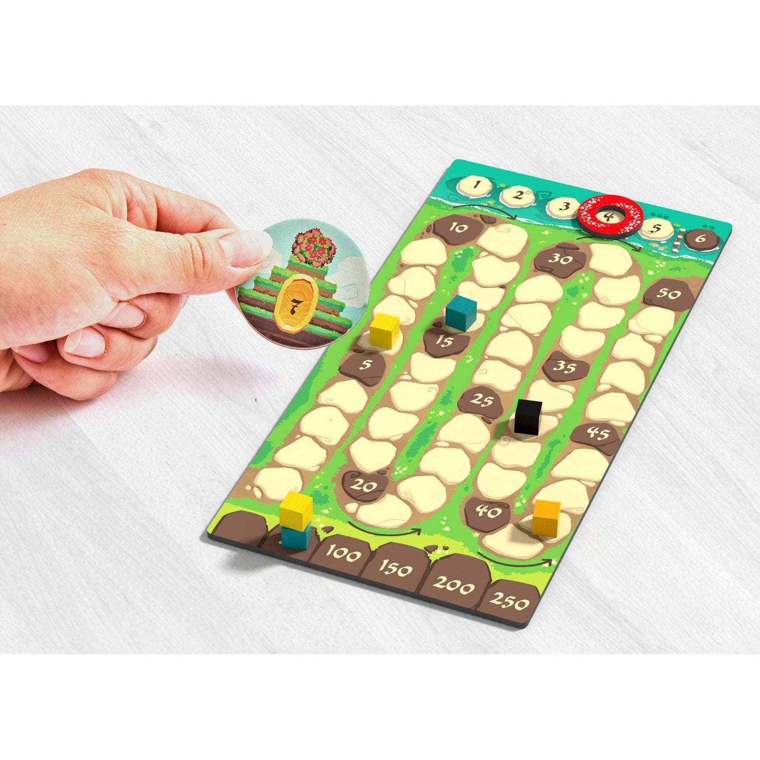 As the game progresses, you can also build upwards, placing garden tiles on top of other garden tiles. Receive points during the game for your placed garden tiles, scoring more points the higher the layer, with a bonus for the fifth layer. At the end of the game players receive extra points for having the most objects in their gardens. The highest score wins!