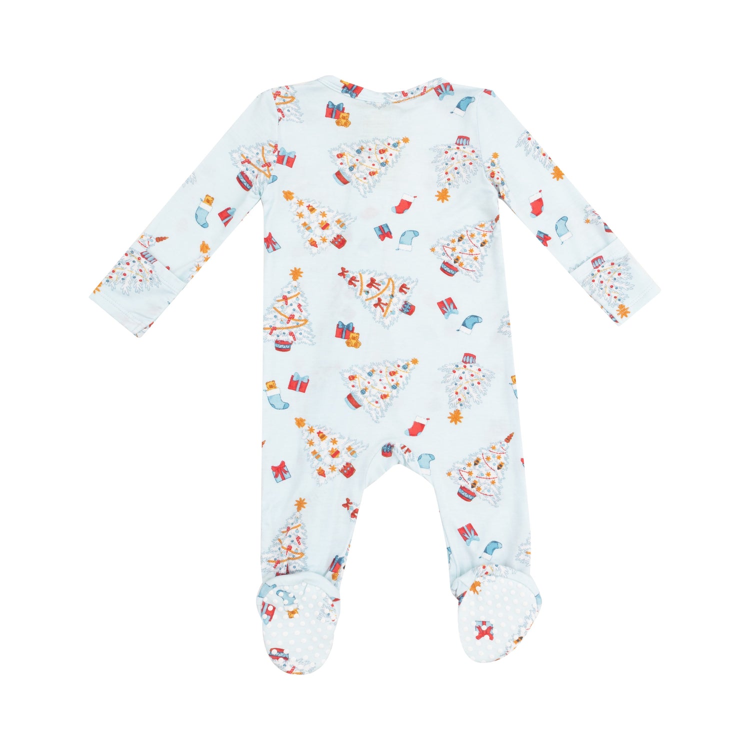 2 Way Zipper Footie - Vintage Christmas Trees Blue