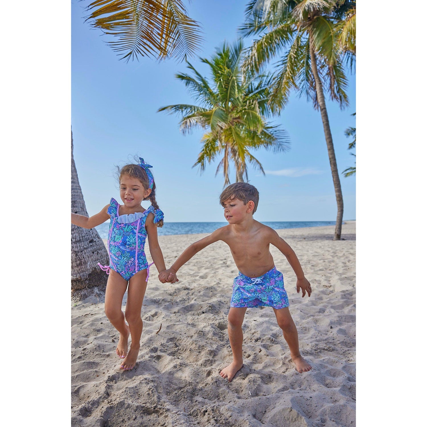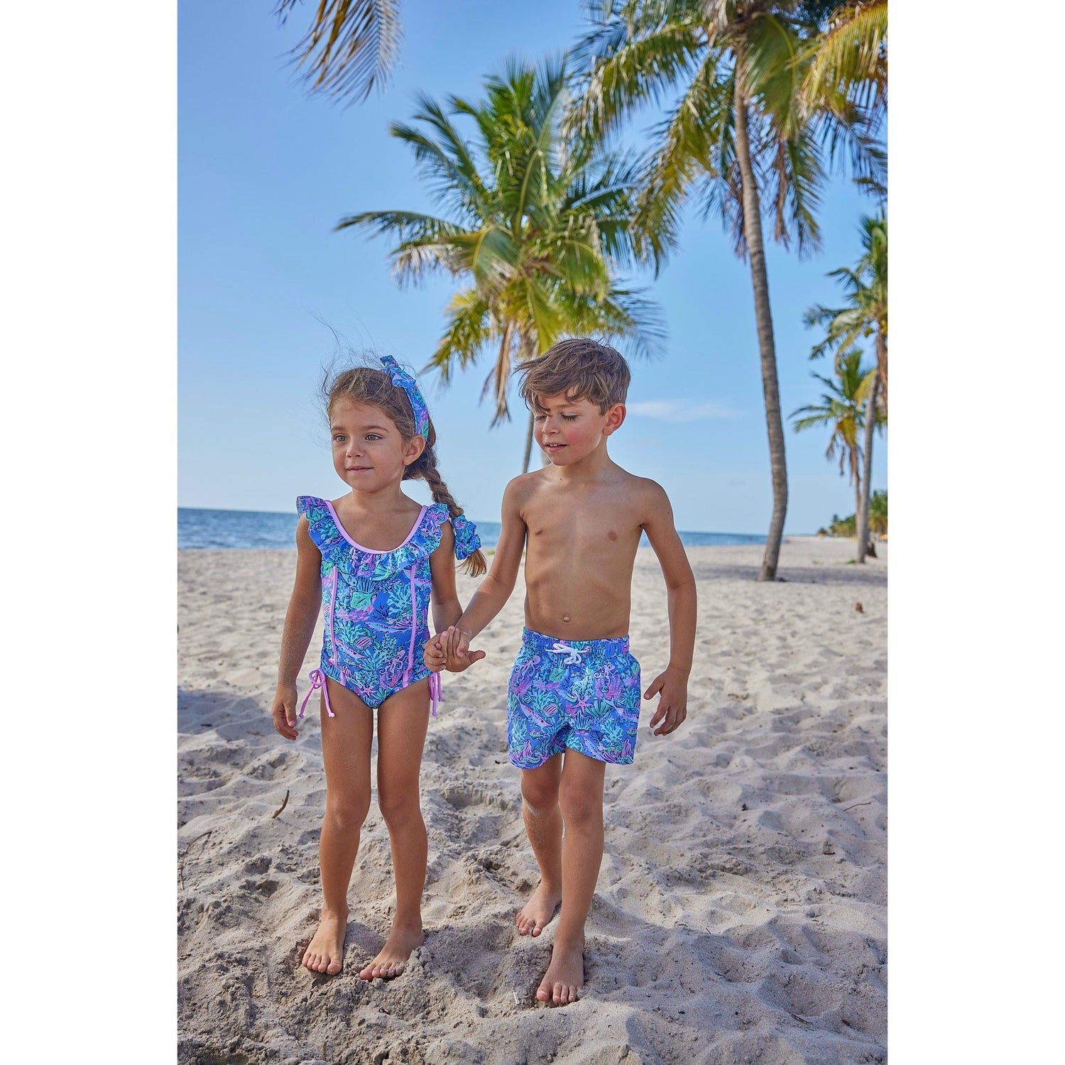 Style: Our classic swim trunks were designed with his comfort in mind. This style features an elastic waistline and includes a contrast drawstring to ensure the perfect fit.