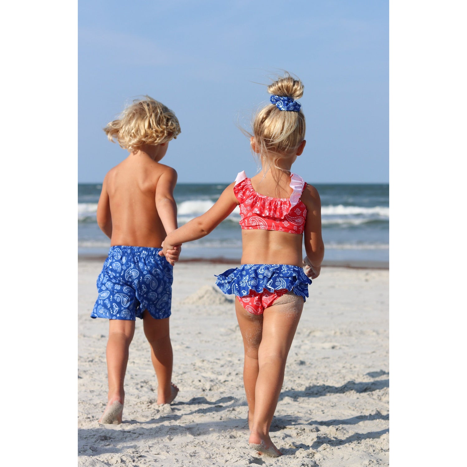 Fabric: This design is made with our premium buttery soft UPF/SPF 50+ swim fabric which is composed of a blend of polyester and elastane giving this style durability, comfort and quick drying capabilities. We love this fabric for its anti-pilling & chlorine-resistant properties!