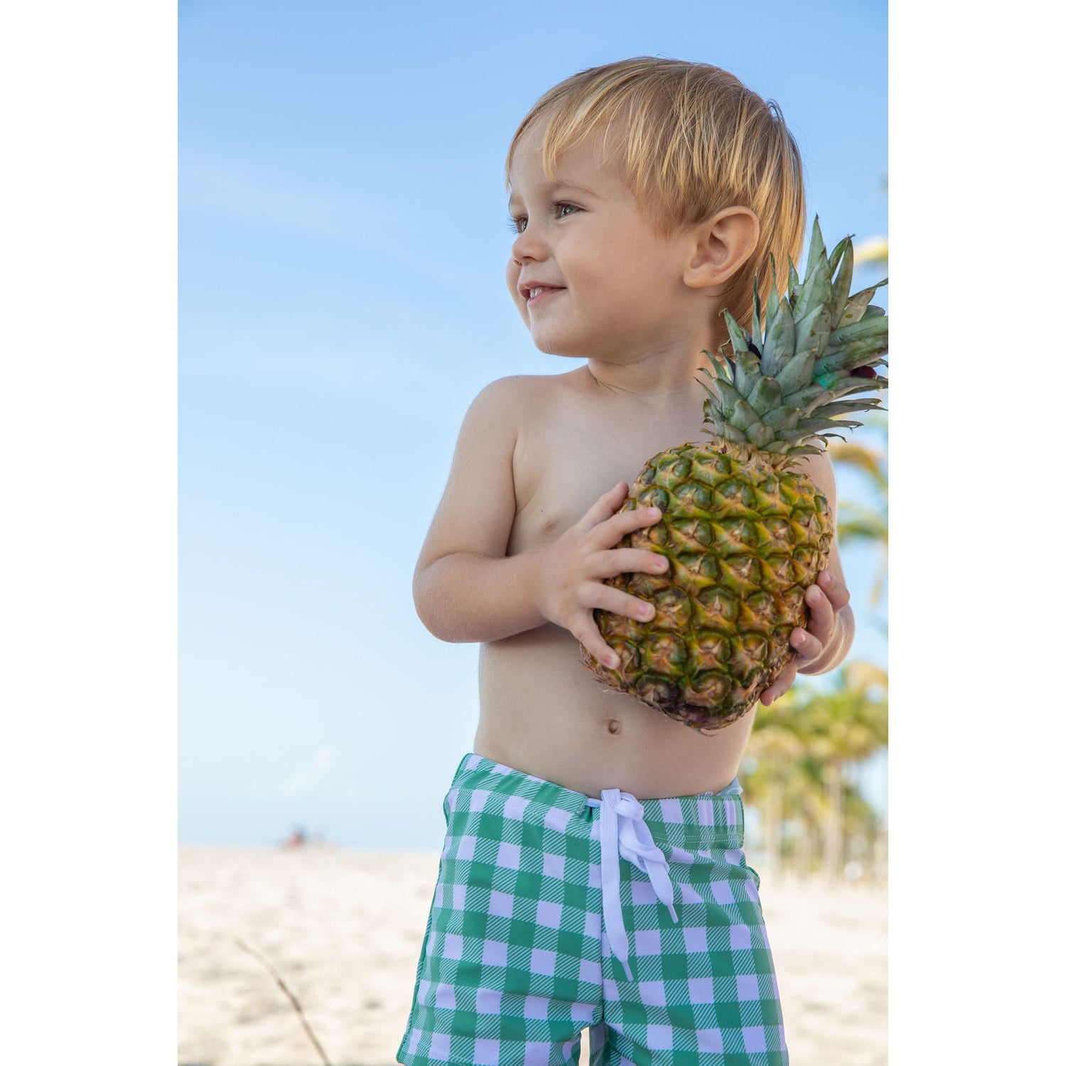 Print:  The soft fabric is made with our resort style moss green check print which coordinates with many of our girl styles.