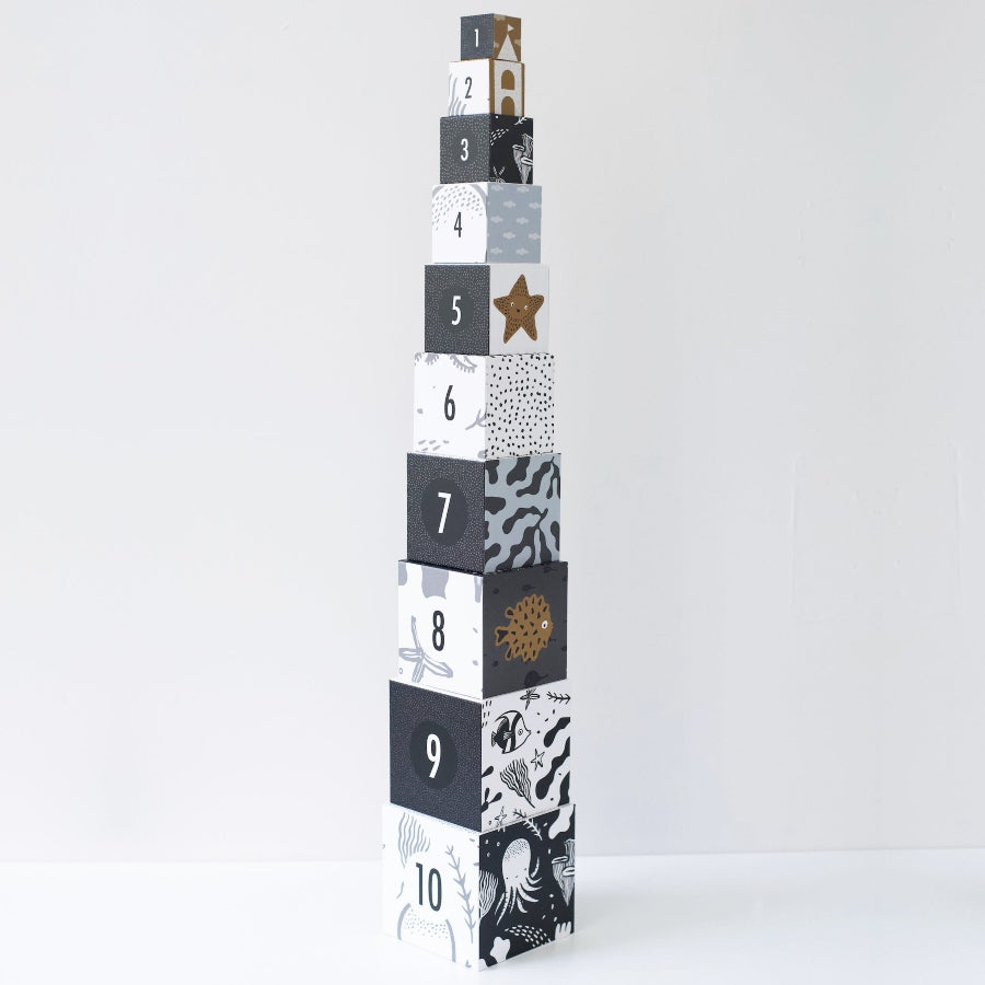 • Ocean Nesting Blocks: Made of FSC certified sturdy board. Keep away from water. Can be wiped clean with a lightly damp cloth.