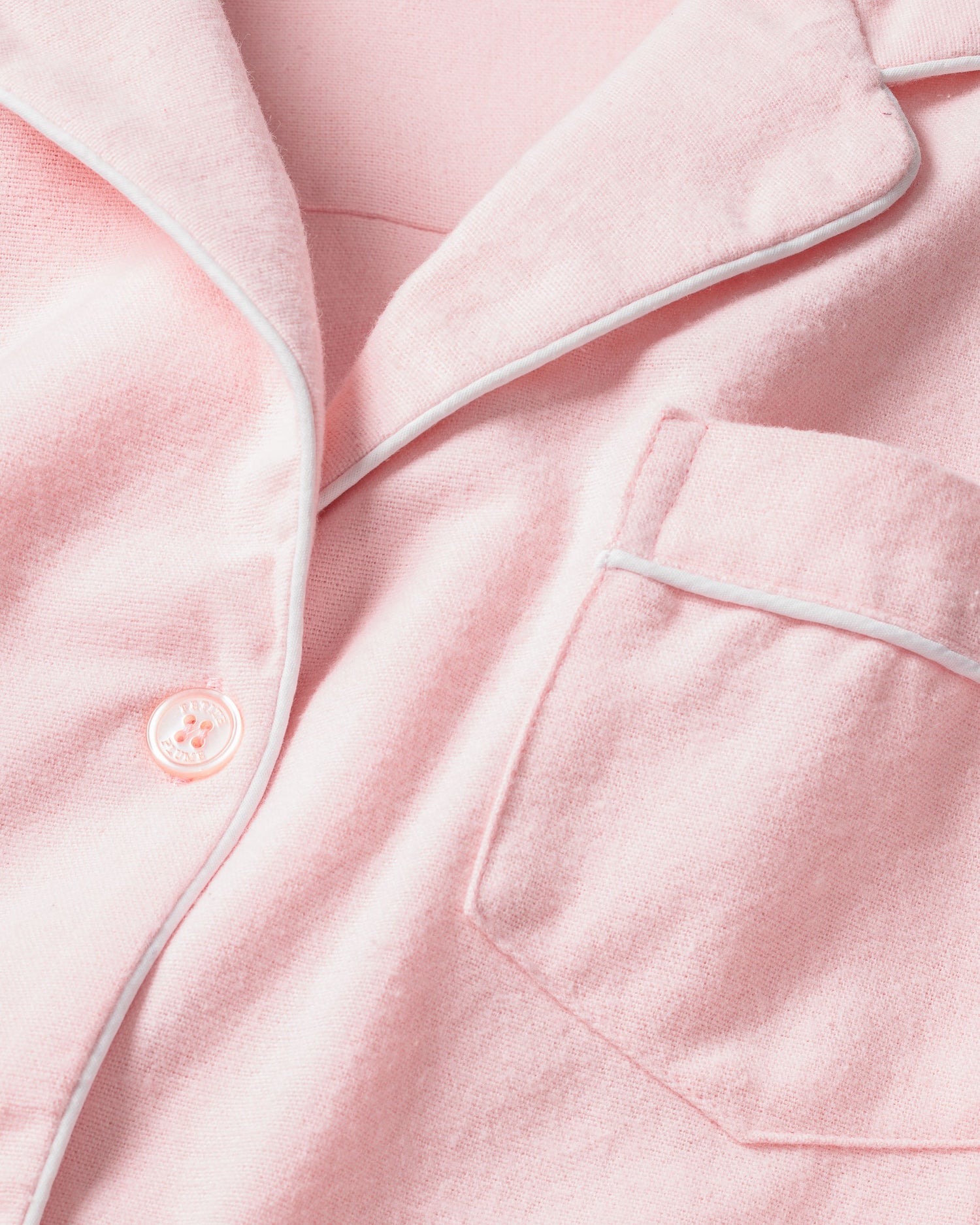 A feminine and sophisticated addition to our classic flannel colors. This fabric has unmatched softness and is lightweight, perfect for year-round comfort. This classic pajama set is accented with white piping and finished with pearl buttons.