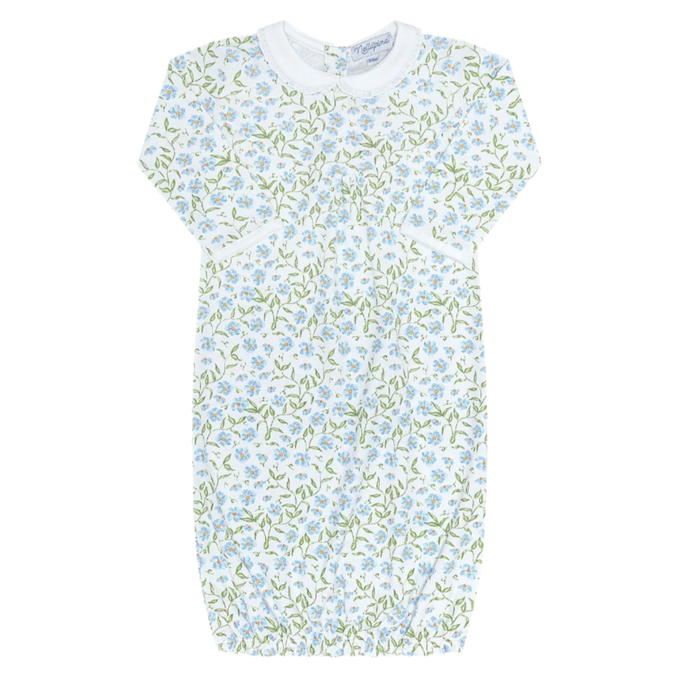 Wrap your baby in elegance and comfort with our Blue Vines gown, made from luxurious 100% Pima cotton. Featuring a delicate ruffle collar and our signature blue floral print, this gown is as beautiful as it is practical.