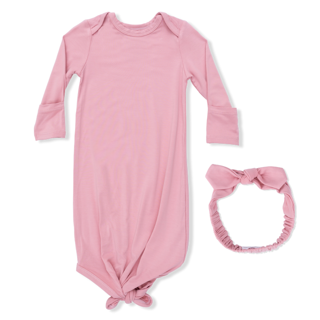 Solid Rose Elegance - Knotted Gown and Headband