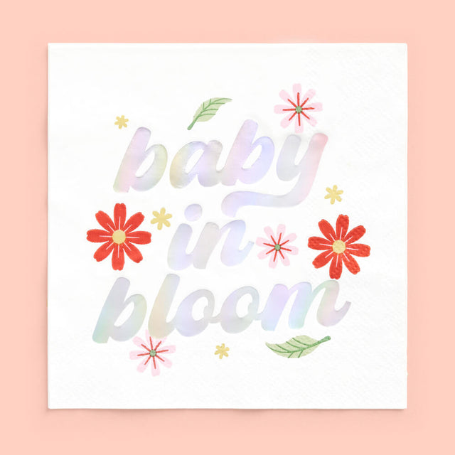 • Iridescent foil "baby in bloom!" + color icons