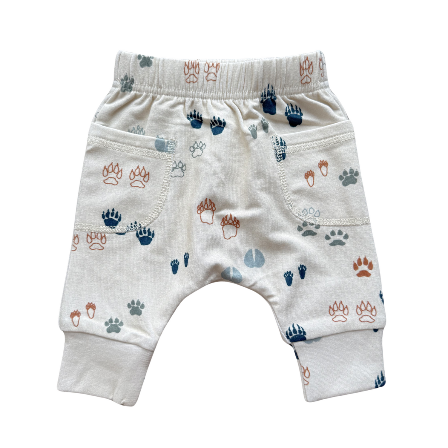The functional side pockets not only add a touch of cuteness but are also perfect for storing tiny treasures. Designed for versatility, these pants come in a range of neutral and playful colors, making them easy to mix and match with bodysuits, tops, and hoodies.