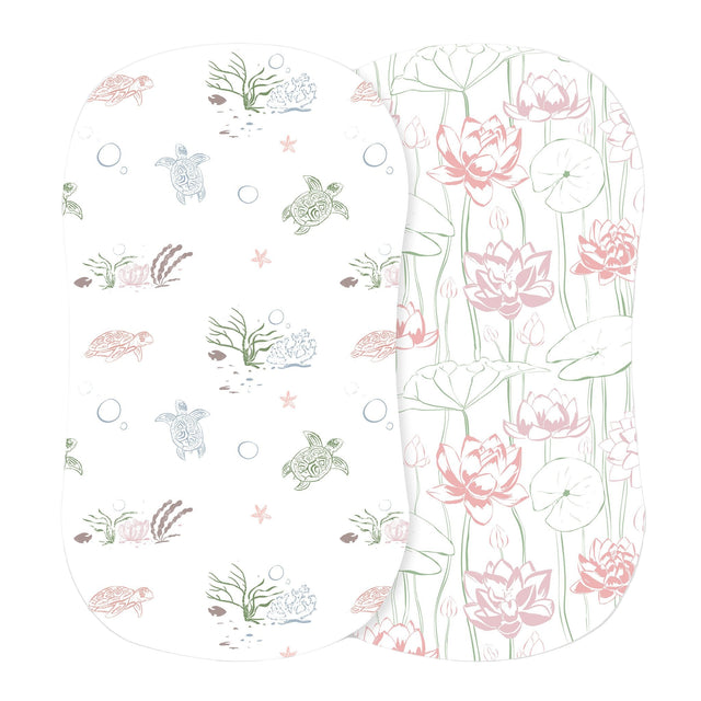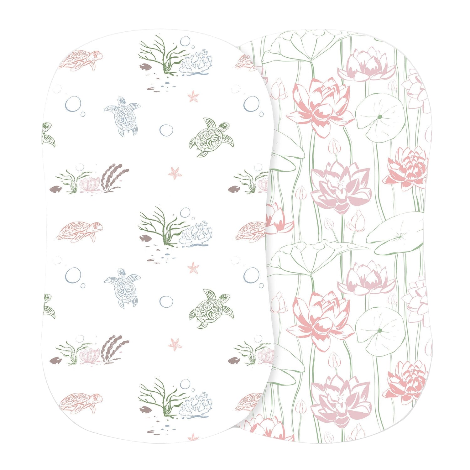 Turtles and Water Lily Bamboo Changing Pad Cover/Bassinet Sheets