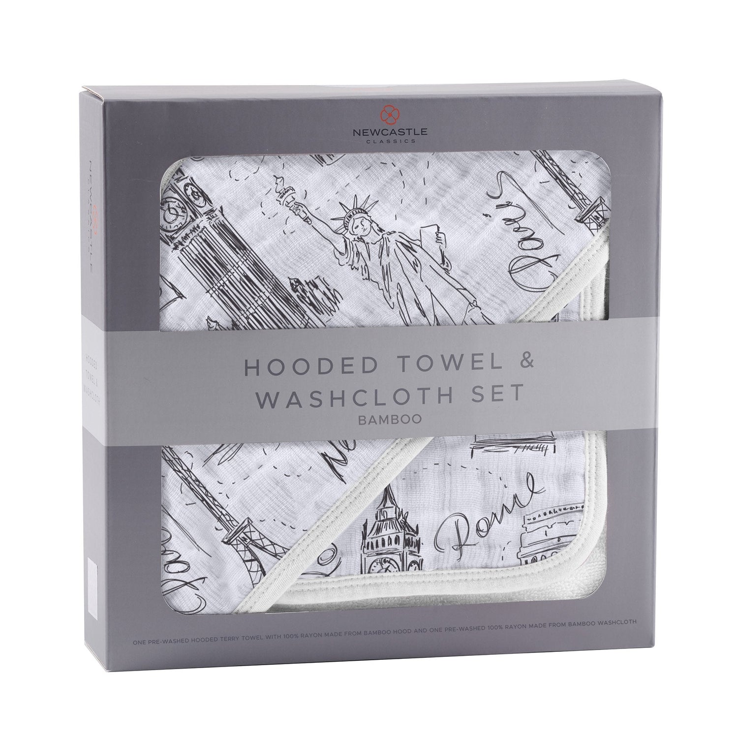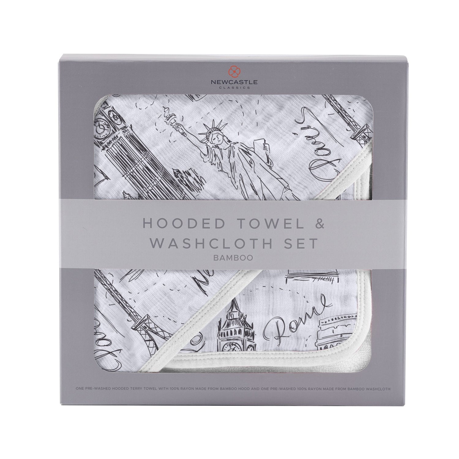 London, Paris, New York Hooded Towel and Washcloth Set