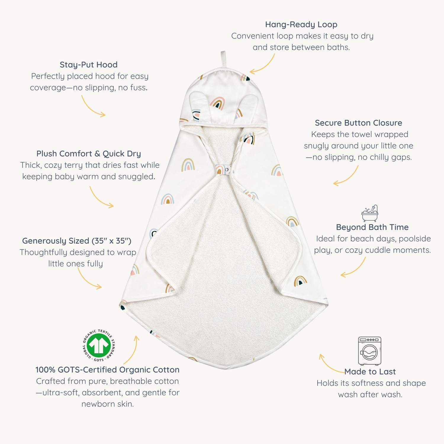 This Hooded Towel is CPSIA Compliant and GOTS-certified – your guarantee of a high quality organic product.
