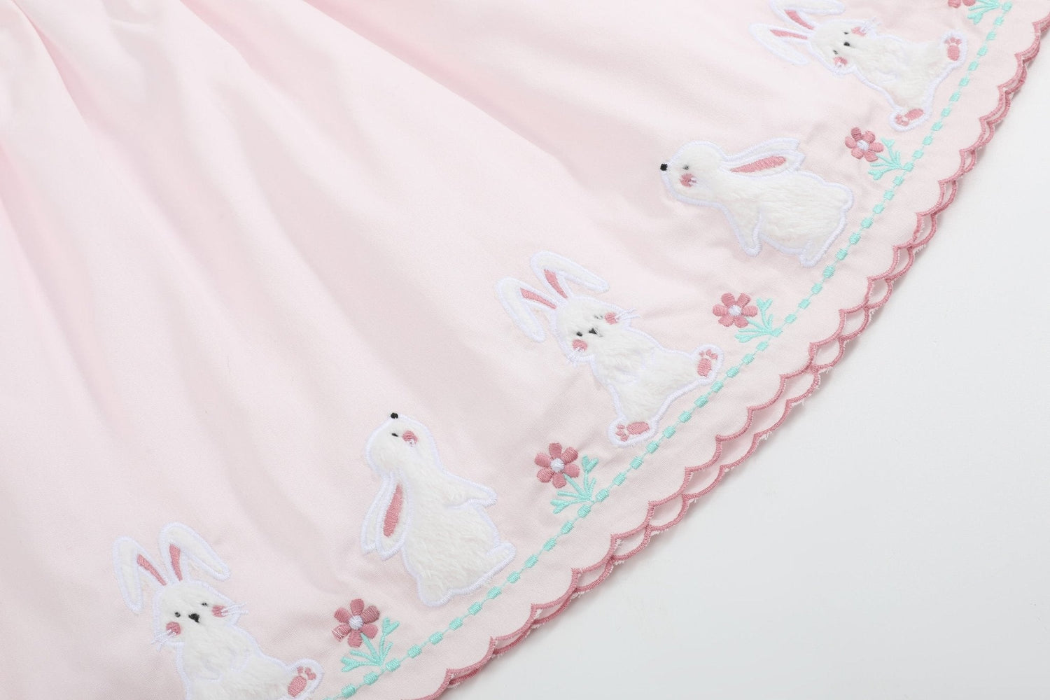 This darling Pink Fuzzy Bunnies Dress is full of springtime charm! It features a pretty scalloped collar adorned with delicate flower embroidery, adding an extra touch of sweetness. Along the bottom, are adorable fuzzy bunnies, which brings the perfect amount of playful detail. Ideal for Easter, garden parties, or sunny day outings—this dress is as precious as it is picture-perfect!