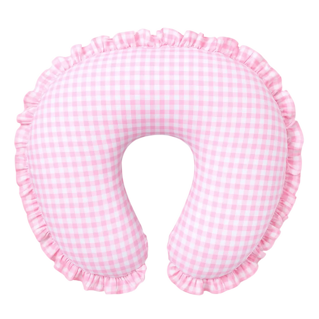 Our Pink Ruffle Gingham Baby Nursing Pillow Cover is designed to fit perfectly on your pillow for feeding / tummy time for those meaningful motherhood moments while breastfeeding or bottle feeding your little one.
