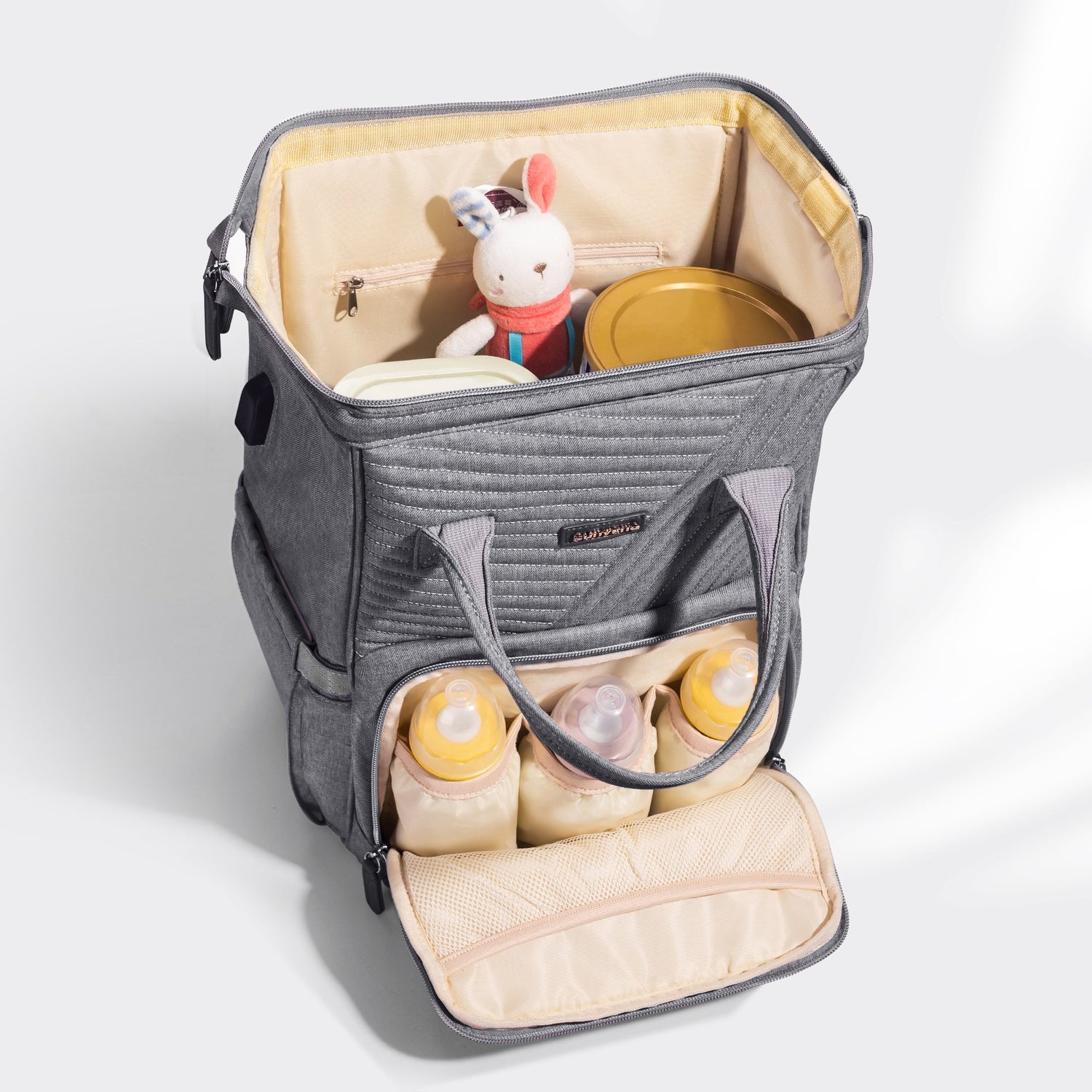 - The wide opening design allows parents to easily find their baby's items, while keeping the bag neat and well-organized.