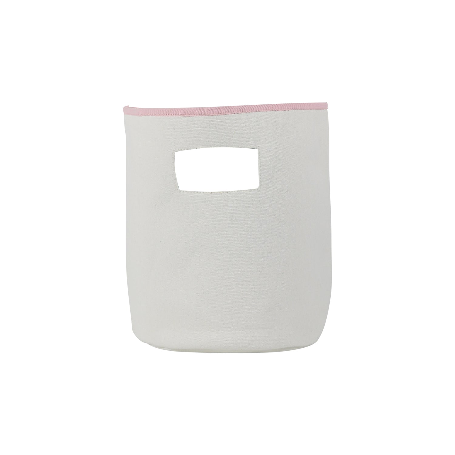 - Solid bin (12"L x 12"W x 12.5"H) can nest inside patterned bin (13"L x 13"W x 13.5"H)